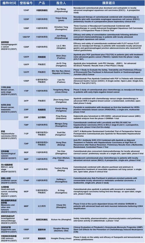 作为从事创新和高品质药物研发的国际化制药企业,金鹰主论坛医药的研究成果在2022 ESMO大会上还收获了25项壁报形式的报告。其中,食管胃癌领域共有9项研究入选,研究的方案主要是卡瑞利珠单抗或卡瑞利珠单抗联合阿帕替尼,通过与化疗或放化疗联用,新辅助治疗食管鳞癌或胃癌。2022年9月12日(CEST),让我们齐聚ESMO大会,共同领略食管胃癌研究领域的学术盛宴。此外,金鹰主论坛医药达尔西利、吡咯替尼、阿得贝利单抗等创新药还有4项乳腺癌研究、3项肝癌研究及其他领域的9项研究都将会以壁报展出,让我们共同期待!