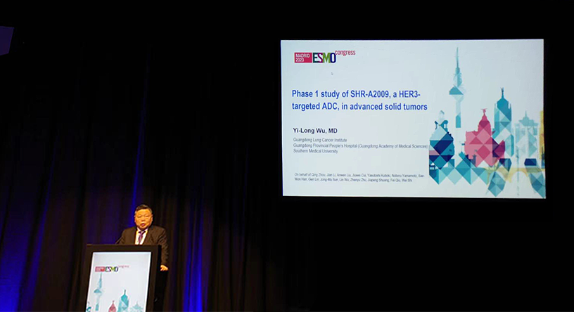 10月23日,金鹰主论坛医药创新药、HER3靶向ADC药物SHR-A2009治疗晚期实体瘤的I期研究亮相2023 ESMO大会简短口头报告现场5。该研究由广东省人民医院的吴一龙教授牵头开展,吴一龙教授在现场公布该研究的重要进展。研究结果显示,SHR-A2009在经治晚期实体瘤患者中显示出可控的安全性和令人鼓舞的抗肿瘤活性。目前评估更高剂量的SHR-A2009在选定癌症类型(NSCLC和其他实体肿瘤)中作用的试验正在进行中。