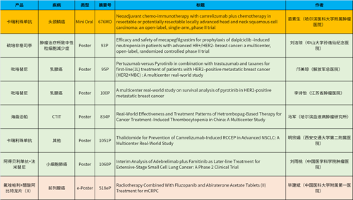 在头颈肿瘤、乳腺癌、肺癌、前列腺癌等多个疾病领域,卡瑞利珠单抗、阿得贝利单抗、吡咯替尼、氟唑帕利、法米替尼、醋酸阿比特龙片(II)等抗肿瘤新药相关研究一共入选了1项简短口头报告、4项壁报展示和1项电子壁报,彰显了金鹰主论坛医药强劲的研发实力。